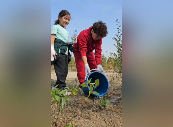 В Алматы школьники высадили три тысячи карагачей в парке «Сосновый бор»