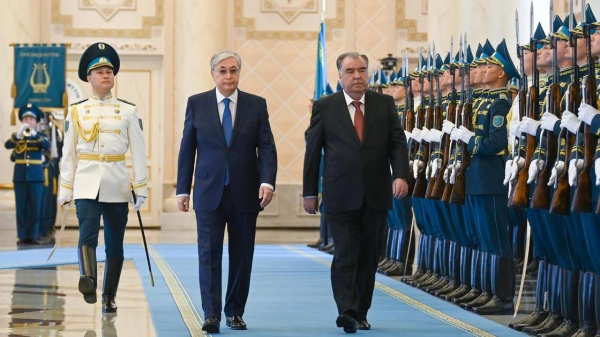 Отмечается, что начальник почётного караула отдал рапорт лидерам стран, после чего прозвучали гимны Казахстана и Таджикистана.