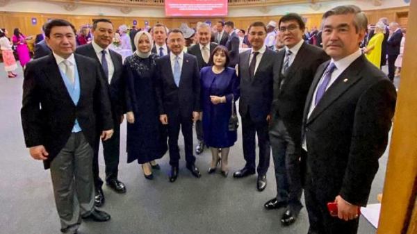 "В Вестминстерском аббатстве в Лондоне с вице-президентом Турции Фуатом Октаем, председателем мажилиса парламента Казахстана Ерланом Кошановым и заместителем премьер-министра Узбекистана Сардором Умурзаковым во время коронации короля Великобритании Карла III ", – говорится в подписи к снимку.
