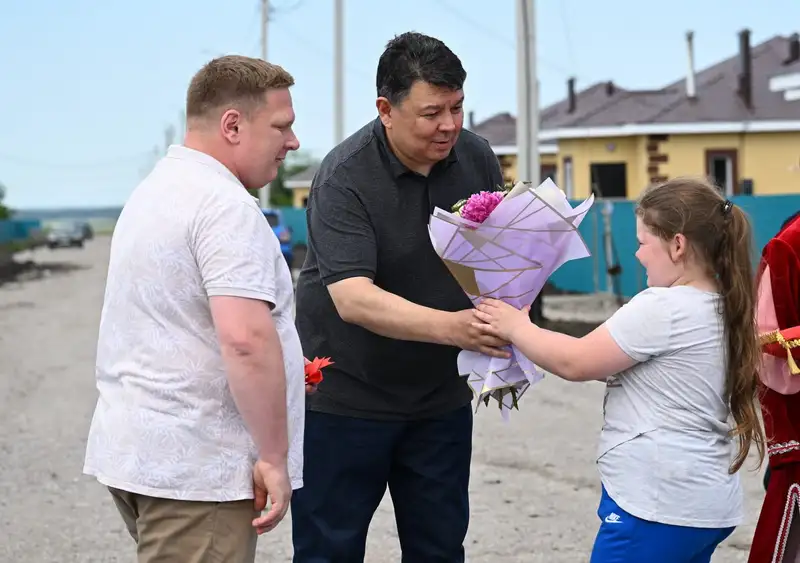 После церемонии вручения Канат Бозумбаев и Гауез Нурмухамбетов посетили новые дома и поздравили с новосельем семьи Галии Хамзиной и Александра Ошмарова.