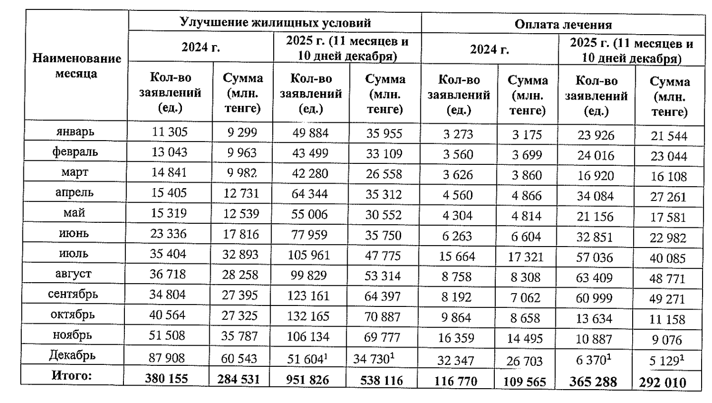 Анализ годовой динамики показывает, что основной пик изъятий на жильё в 2025 году пришёлся именно на осень. Рекордсменом стал октябрь, когда фонд исполнил беспрецедентные 132 165 заявлений. Ноябрь поддержал этот высокий темп: было исполнено 106 134 заявления – в этот период слухи о грядущих изменениях уже циркулировали, но ещё не были формализованы. Декабрь уверенно удерживает эту тенденцию: судя по взрывной активности первой декады, последний месяц года имеет все шансы повторить или даже превзойти осенние рекорды. За 10 дней (с 1 по 10 декабря) было исполнено 51 604 заявления на улучшение жилищных условий на сумму 34,7 млрд тенге.
