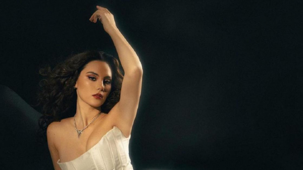 Её нежный образ дополняет ожерелье на шее. На втором фото в карусели Катриона запечатлена крупным планом, она смотрит прямо в камеру, завораживая своей загадочной красотой.