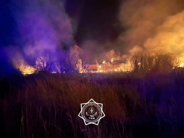 Вчера ночью в Кербулакском районе на территории государственного национального природного парка "Алтын-Эмель" вдоль реки Или произошло загорание камыша и кустарников.
