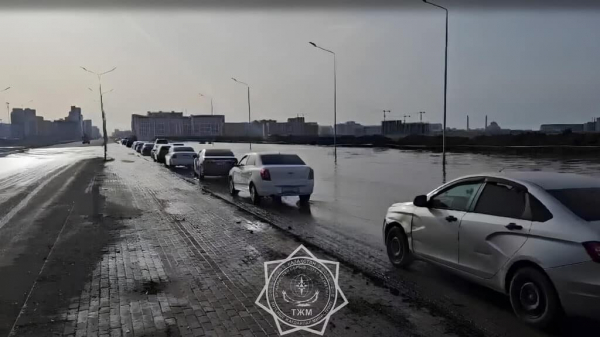 «Из-за обильного таяния снега на полигоне для вывоза снега происходит поступление и разлив талой воды на дорожное полотно по проспекту Улы дала», — говорится в сообщении.