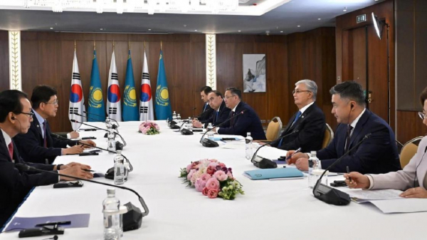По информации Telegram-канала Акорды, на полях казахско-корейского бизнес-форума президент Касым-Жомарт Токаев провел встречу с председателем совета директоров BNK Financial Group Бин Дэ-Ином.