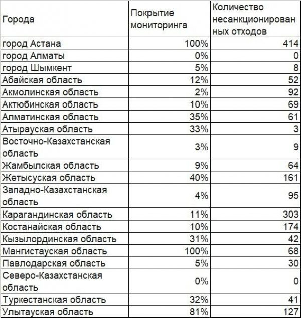 На сегодняшний день продолжается мониторинг стихийных свалок по всем областям Казахстана.