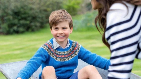 На одной из фотографий улыбающийся Луи изображен в тачке, которую везёт его мать — герцогиня Уэльская Кейт.