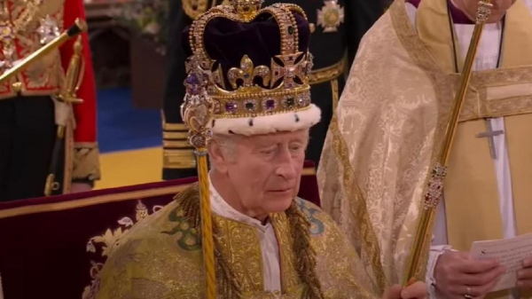 В заключительной части архиепископ Кентерберийский Джастин Уэлби возложил на голову Карла III корону святого Эдуарда, после этого в Лондоне прозвучал оружейный салют.