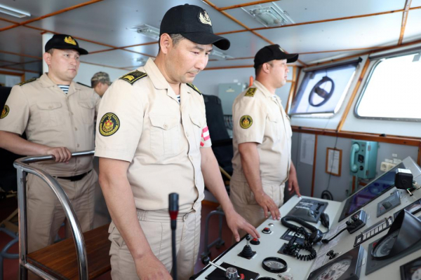 Первым пунктом посещения стал ракетно-артиллерийский корабль Военно-морских сил Вооруженных сил Казахстана.