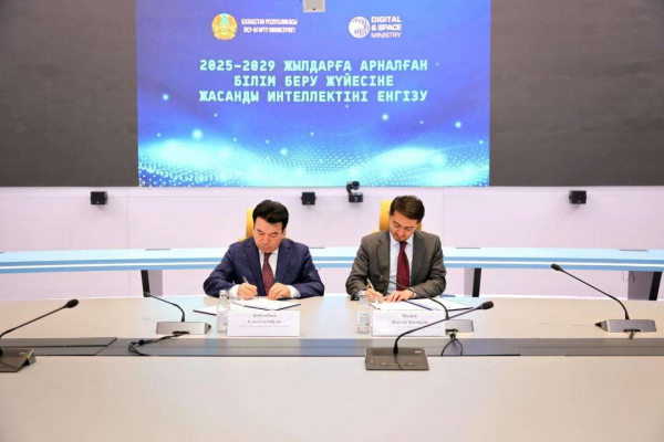 В Министерстве просвещения рассказали , что Министр просвещения Гани Бейсембаев и Министр цифрового развития, инноваций и аэрокосмической промышленности Жаслан Мадиев подписали совместный приказ об утверждении Концептуальных основ внедрения искусственного интеллекта в систему среднего, технического и профессионального, послесреднего образования на 2025–2029 годы.