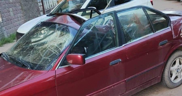 Мужчина упал на припаркованный во дворе жилого комплекса автомобиль.