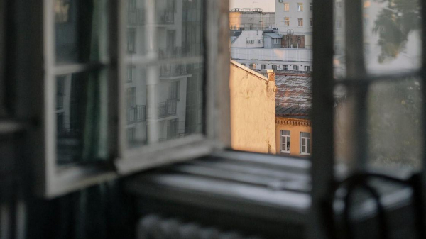 Девочка открыла окно и вылезла наружу.