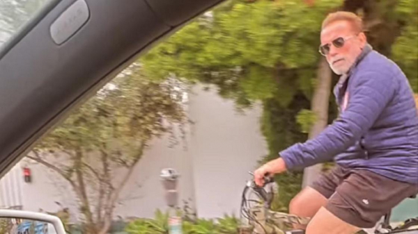 На своей странице в Instagram живущий в США казахстанец выложил небольшое видео о том, как он на машине ехал по городу. Во время поездки он заметил мужчину, который передвигается на фэтбайке по обочине, похожего на Арнольда Шварценеггера.