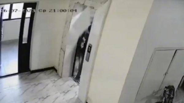 Как отмечают корреспонденты телеканала, согласно записям камеры видеонаблюдения, четверо детей ждут лифт, а спустя несколько секунд на пол падает плитка, отколовшаяся от стены.