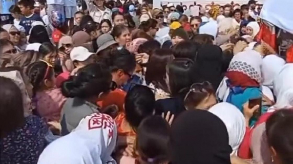 Судя по кадрам, давка произошла возле юрт, где жителям Атырау раздавали презенты. При этом можно услышать истошный крик женщины.