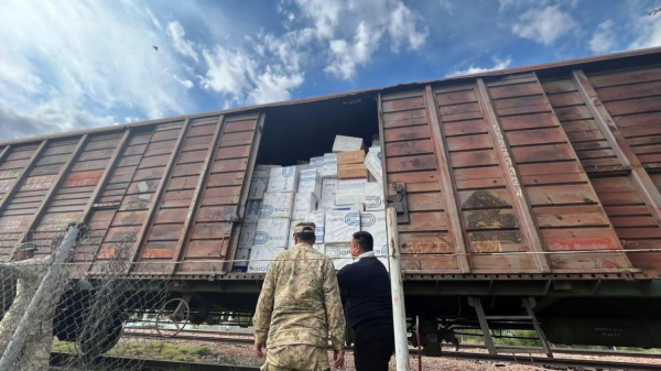 Крупную партию сигарет без акцизных марок в двух вагонах грузового поезда сообщением Бишкек – Турксиб обнаружили сотрудники Погранслужбы КНБ 28 июня. Досмотр поезда состоялся в железнодорожном пункте пропуска "Мерке" в Жамбылской области, сообщили в пресс-службе КНБ.