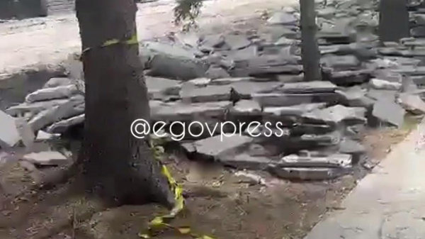 "Плиты находятся над подземным помещением (площадь около 200 кв. м). Они были сняты для проведения гидроизоляции. После завершения работ плиты будут установлены на место", – добавили в ведомстве.
