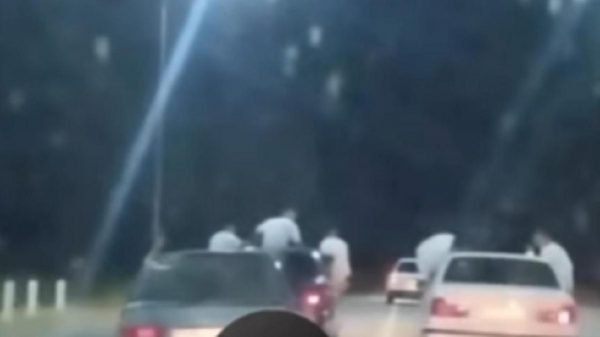 На опубликованном видео видно, как пассажиры авто высунулись из окон. При этом автомобили петляют по дороге, игнорируя разметку и знаки.