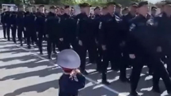 Марш полицейских перед малышом сняли на видео в Костанае