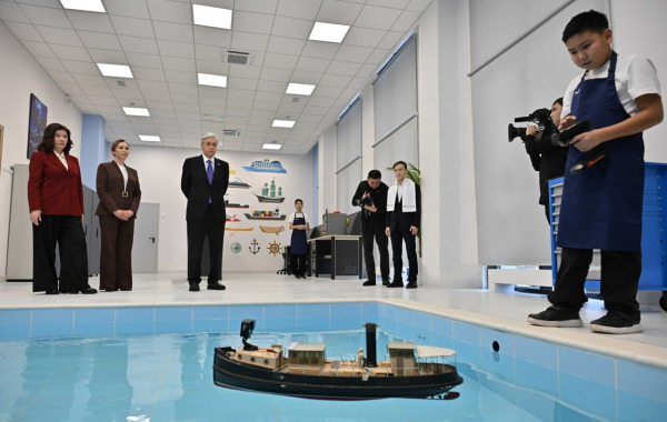 Глава государства осмотрел учебные классы, хореографический зал, коворкинг-центр, плавательный бассейн с инновационной системой искусственного интеллекта, мастерскую судомоделирования, студию театрального искусства и спортивный зал.