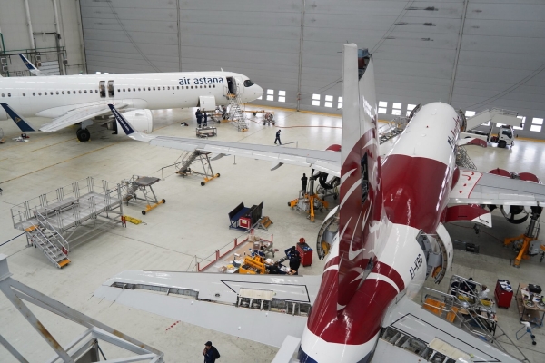 Такое обслуживание проводится в ангаре в Астане. Раньше самолёты Air Astana проходили С-check за рубежом – в Европе, России, Китае. Это доставляло определенные трудности – доставка запчастей, сторонний персонал, удалённость центра. Все это приводило к финансовым и временным затратам для компании.