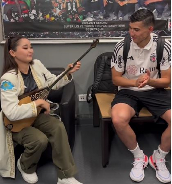 Алматинская исполнительница Aididau сыграла на домбре после первого гола Бактиера Зайнутдинова песню фанатов «Бешикташа».